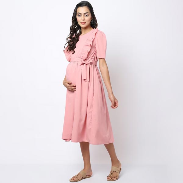 0 review(s) for "Pink Crepe Maternity Midi Dress"